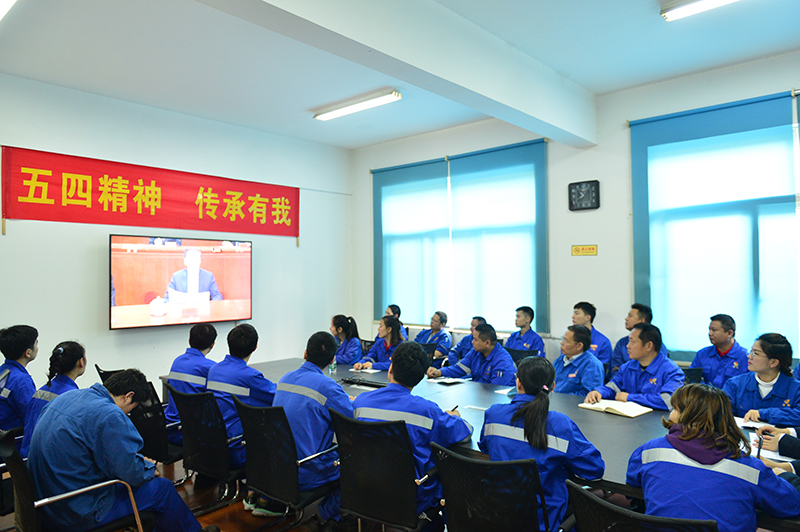仪式结束后,公司领导左少怀、宋光鑫带领各二级团委团干在会议室学习观看了习近平总书记五四讲话。