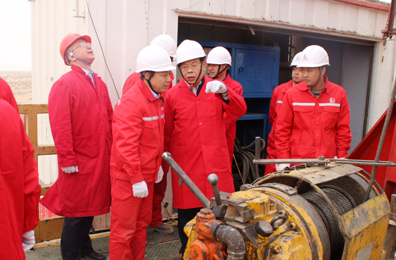 左少怀一行在中石化西北油田物资管理中心党委书记赵立虎等陪同下参观了正在生产的油井,登上井架零距离体验石油工人和安博登录网页版技术服务人员的工作环境,并现场与油井负责人进行交流,充分听取井队意见,详细介绍安博登录网页版品牌优势。
