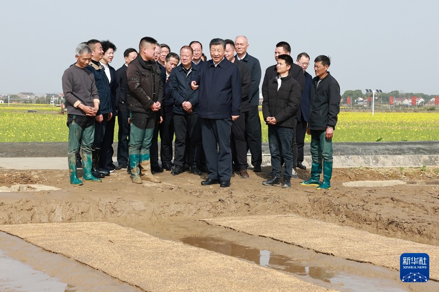 3月18日至21日,中共中央总书记、国家主席、中央军委主席习近平在湖南考察。这是19日下午,习近平在常德市鼎城区谢家铺镇港中坪村,同种粮大户、农技人员、基层干部亲切交流。新华社记者 鞠鹏 摄