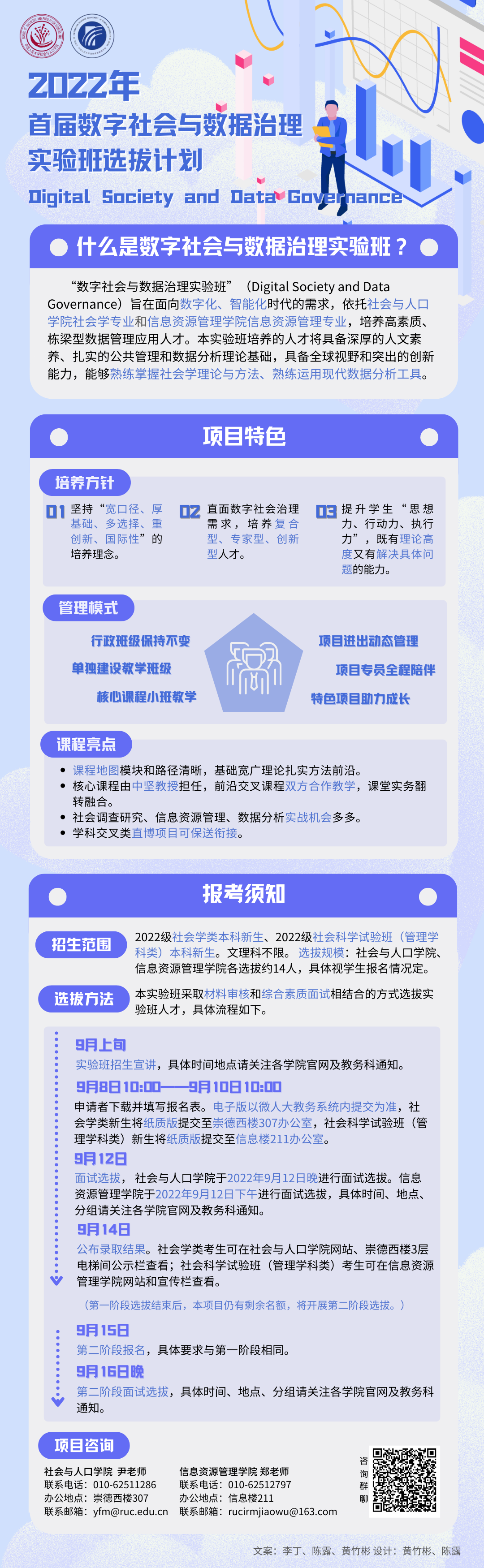 2.选拔条件:对社会学、信息资源管理、公共管理、数据分析等感兴趣;有志于双学位学习;身心健康、学习能力强;文理科不限。