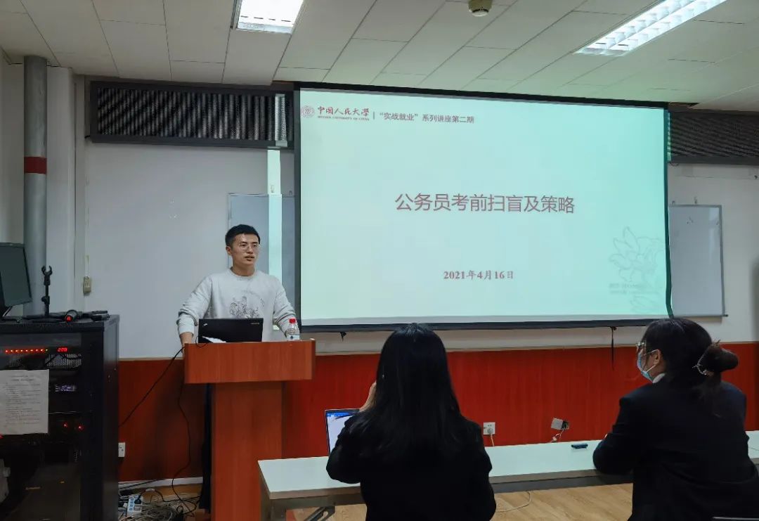 2021-04-19 文:yl9193永利集团 图:yl9193永利集团 4月16日19:00,社会与人口公司“实战就业”系列讲座第二期在崇德西楼512会议室成功举办。本期讲座围绕“公务员考前扫盲及策略”这一主题展开,公司王源员工担任本期讲座主讲嘉宾。王源结合自身备考和工作经验向同学分享了选岗报岗策略和备考经验,为同学们带来了一场诙谐幽默、干货满满的公考备考小讲堂。