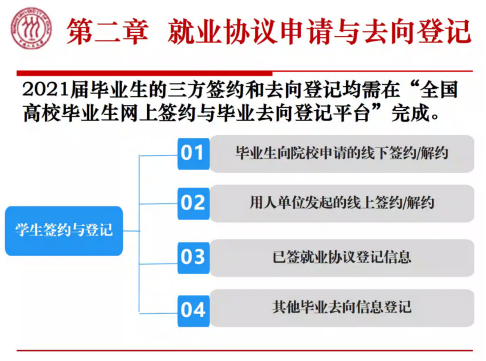 会议伊始,张芷凌老师简要介绍了本硕博毕业生的就业协议申请与去向登记的相关事宜,并依次就毕业生向院校申请的线下签约/解约、用人单位发起的线上签约/解约、已签就业协议登记信息、其他毕业去向登记信息四个方面进行了详细说明,帮助大家尽可能了解签约流程,解答手续办理的难点。