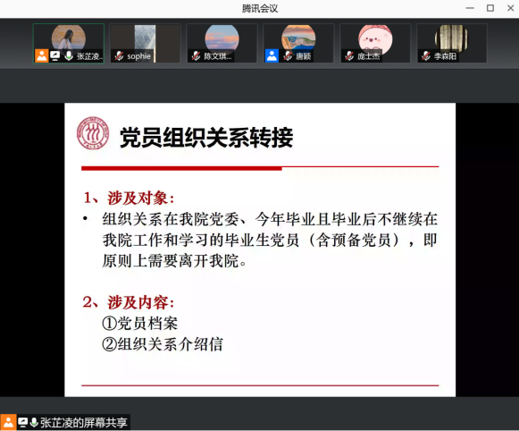 随后,张芷凌老师对党员组织关系转接的相关内容进行了讲解,重点强调党员档案和组织关系介绍信的有关注意事项,并分享了可供参考的具体案例,加深了毕业生们对于组织关系转接工作的了解。