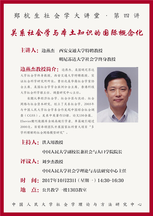 主 讲 人:边燕杰教授(明尼苏达大学社会学终身教授、西安交通大学特聘教授)