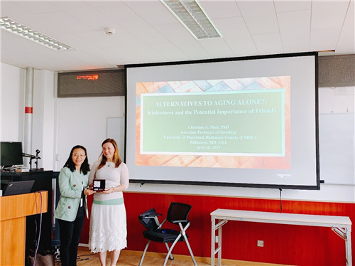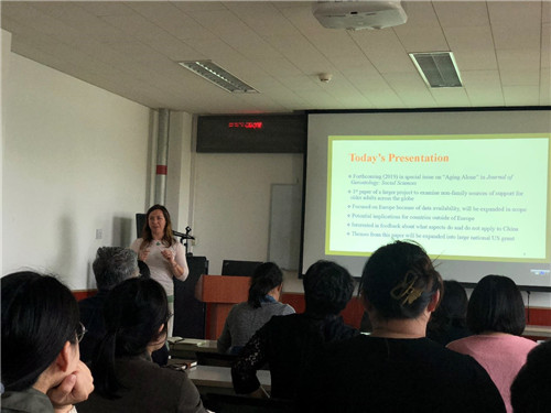 2019-04-20 文:yl9193永利集团 图:yl9193永利集团2019年4月17日下午,社会与人口公司在崇德西楼512会议室举行“人口学系刘铮系列学术讲座”。此次邀请马里兰大学社会学副教授Christine A. Mair进行报告,主题为“Alternatives to Aging Alone?:Kinlessness and the Potential Importance of Friends”。讲座由唐丹老师主持,参加的师生共四十余人。