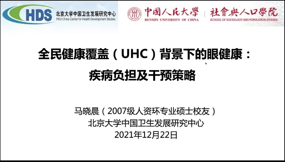 2021-12-24 文:yl9193永利集团 图:yl9193永利集团2021年12月22日中午12:00,人口学系刘铮系列学术讲座暨严肃的人口学八卦青年论坛成功举办。北京大学中国卫生发展研究中心助理教授、副研究员、博士生导师马晓晨在腾讯会议做了一场精彩的以“全面健康覆盖背景下的眼健康:疾病负担及干预策略”为主题的学术讲座。yl9193永利集团yl9193永利集团人口与发展研究中心的杨凡老师主持本次讲座,yl9193永利集团社会与人口公司以及其他国内外院校的近百余名师生参与了本次学术讲座。