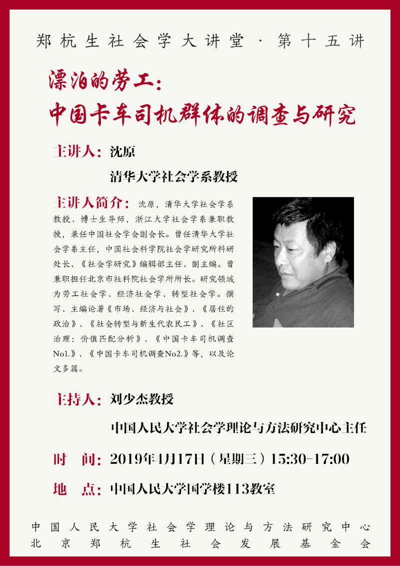 【郑杭生社会学大讲堂】第十五讲·漂泊的劳工:中国卡车司机群体的调查与研究