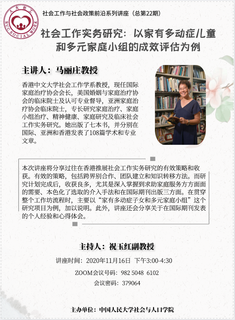 讲座回顾 | 马丽庄:社会工作实务研究:以家有多动症儿童和多元家庭小组的成效评估为例