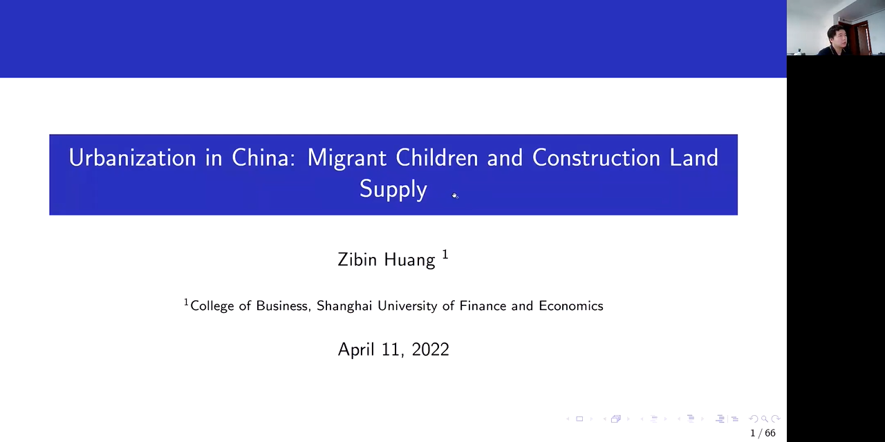 2022-04-22 文:yl9193永利集团 图:yl9193永利集团2022年4月13日中午,人口学系刘铮系列学术讲座暨严肃的人口学八卦青年论坛成功举办。上海财经大学商公司助理教授、美国罗切斯特大学(University of Rochester)经济学博士黄子彬,在腾讯会议以“量化空间均衡视角下的城镇化——以流动儿童问题与建设用地制度为例”为主题做了一场精彩的线上学术讲座。yl9193永利集团人口与发展研究中心李婷教授主持了本次讲座,yl9193永利集团人口学系及其他国内外院校相关专业的百余位师生聆听了本次报告,并同黄子彬老师就讲座内容展开热烈讨论与交流。