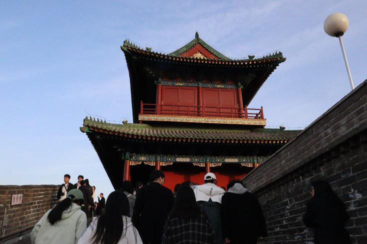 跟随习近平总书记的步伐,同学们来到正定历史古城。登上这座有着1600多年历史的城墙,便可俯瞰古城三塔,城墙上陈列的宣传栏讲述了习近平总书记为发展正定经济的一系列举措。同学们深深感慨,在正定各项事业的建设中,敢为人先的勇气、大刀阔斧的改革都是不可或缺的。