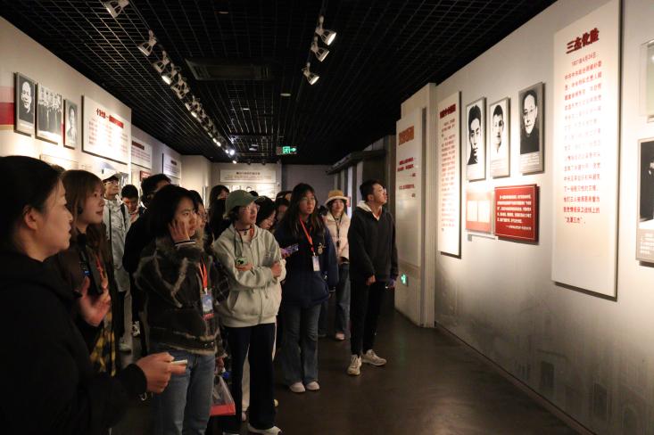 仪式结束后,同学们参观了西柏坡陈列展览馆。馆内以“新中国从这里走来”为陈列主题,通过十二个展厅再现了中共中央革命领袖们在西柏坡期间的革命实践活动。通过深入了解背后的历史故事,同学们见证了中国共产党从无到有、从完成战争蓝图到绘制建国蓝图的伟大转变,感受到了中国共产党和人民之间深厚的情感纽带。