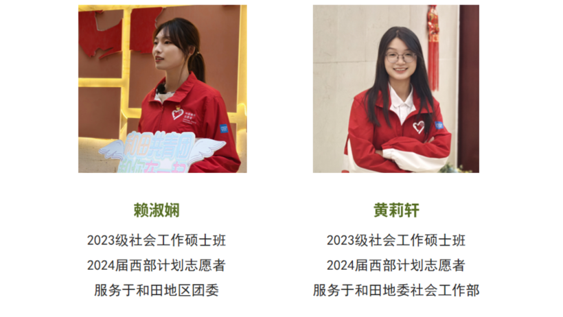 社会工作系2023级MSW员工赖淑娴、黄莉轩讲述了“社工员工西部行:在和田书写我们的故事”。他们以初识在和田、行走在和田、收获在和田三方面为脉络进行分享。赖淑娴同学首先介绍了和田以及西部计划的情况,接着分享了自己在基层的下乡调研等经历。黄莉轩同学重点介绍了社会工作部的主要职责,以及自己在和田地委社会工作部的具体工作。最后她解读了社会工作在基层工作中的专业性,强调在工作生活与人际交往中收获温情。