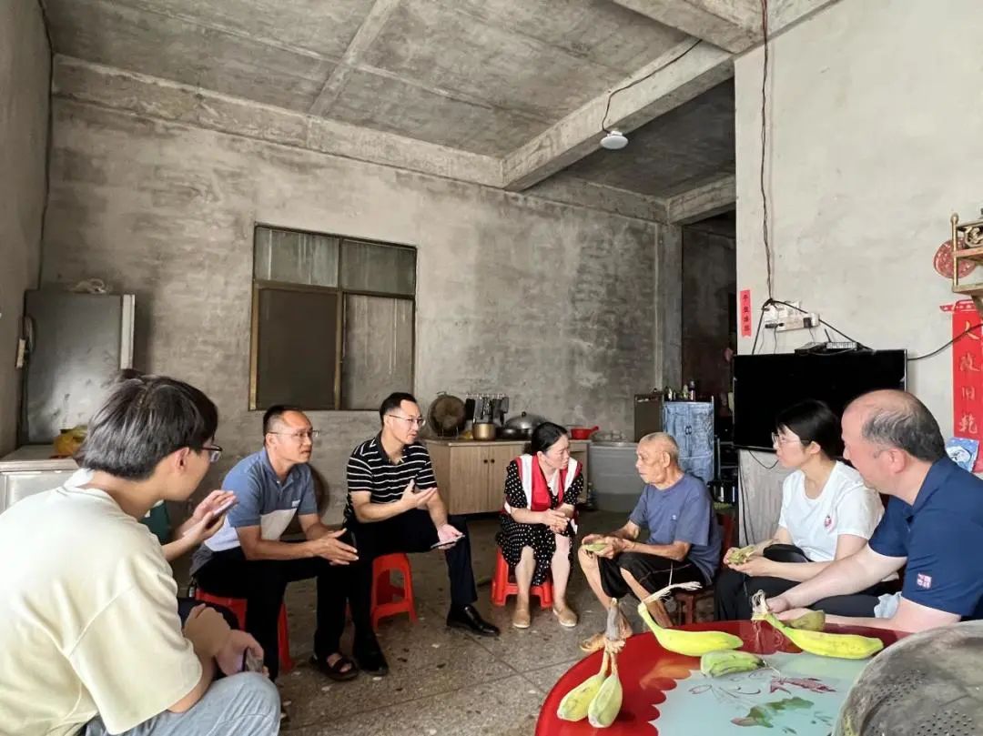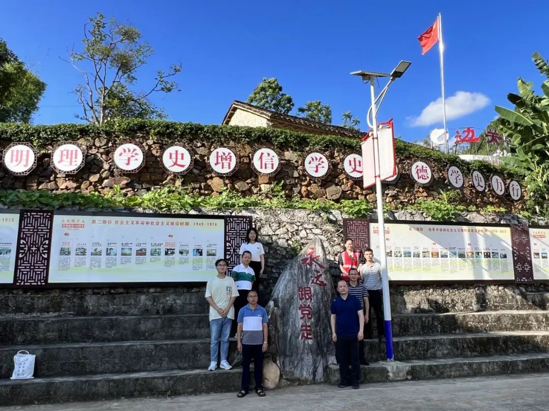 7月10日下午,2023年度田野课堂靖西教学基地师生在靖西市吞盘乡党委书记唐志平、弄乃村驻村第一书记路玉芳、村党总支部书记隆国锋、吞盘乡副乡长罗世友的带领下,来到祖国西南边境的第一个党支部--中共靖镇支部--旧址,了解该支部成立的历史背景与发展脉络,并到烈士子女的家中调研和学习。
