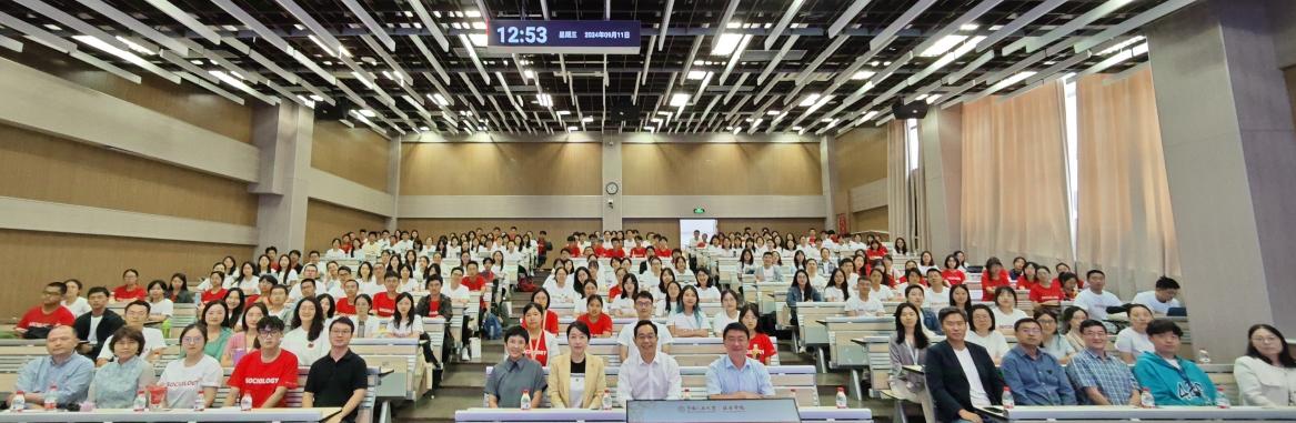 2024级本科新生代表陈庚发言。他提到,今年8月,他怀揣着对人大的憧憬和对社会学的浓厚兴趣入校,希望能持续探索未知领域,深化对社会学的研究与理解。他谈到,自己对参与公司的各项学术、文体和实践活动充满兴趣,期待和同学们一同努力提升自我,不负青春韶华。