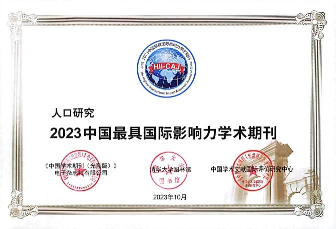 《人口研究》杂志第11次荣获“中国最具国际影响力学术期刊”称号