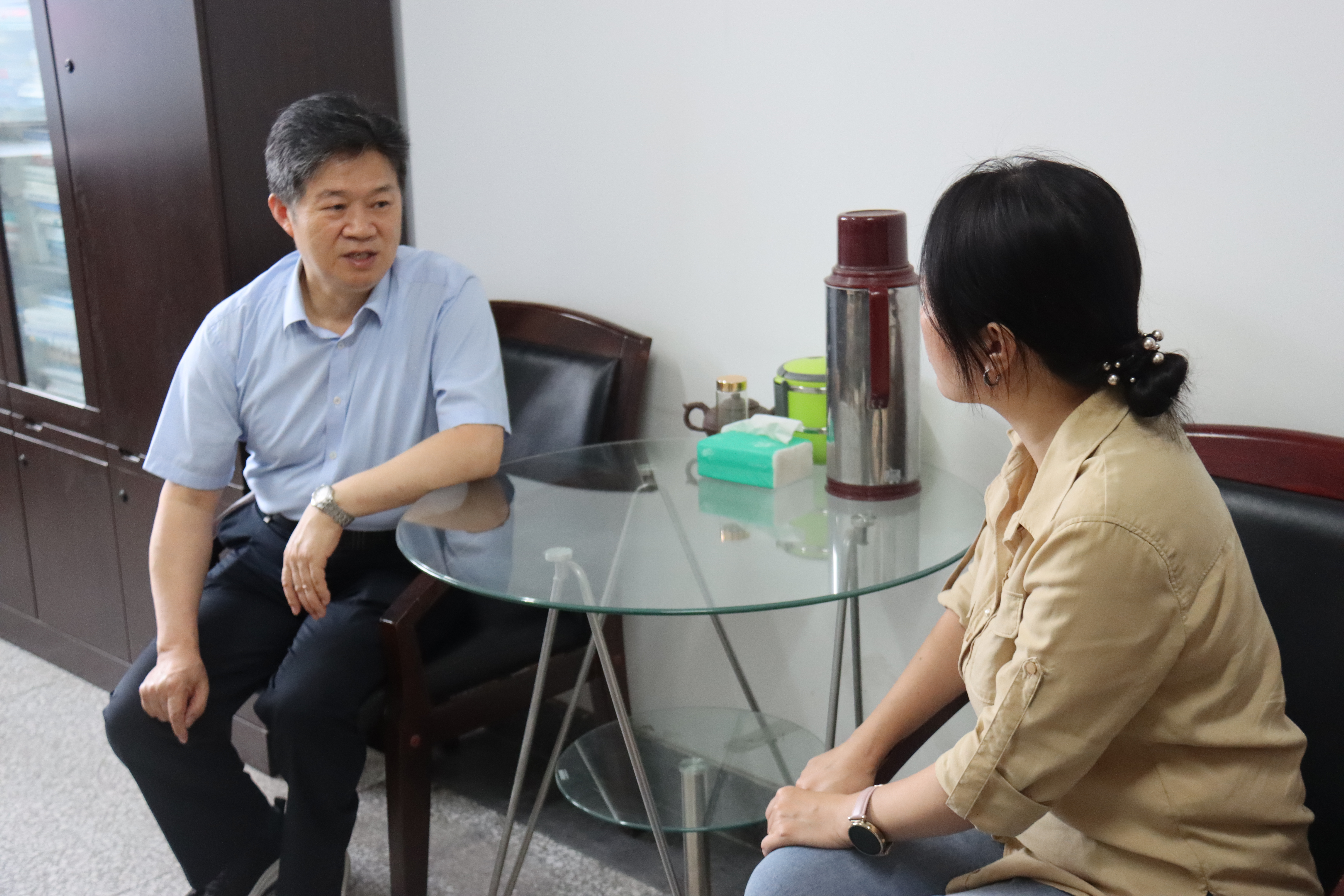副经理富晓星同青年教师代表廖越进行了亲切交谈。富晓星表示,作为今年新入职公司的教师和新生班主任,廖越迅速地投入到了公司建设的各项事业中,充分展现出了热爱教育、热爱学科、热爱员工的职业信念,未来,希望他能够保持乐教爱生、甘于奉献的仁爱之心,成长为公司的骨干力量。