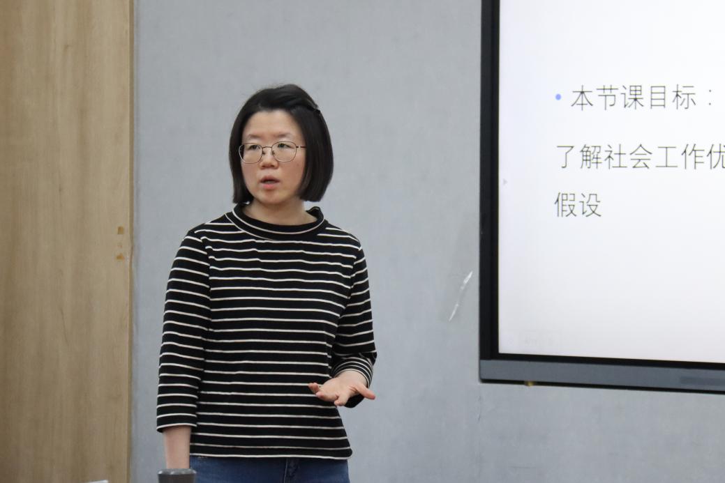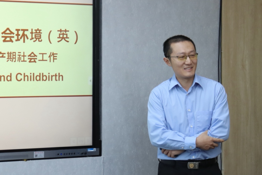 王阳的讲授主题为“人类行为与社会环境:孕产期社会工作”。他首先通过自己朋友的亲身经历引出课程主题,以小组讨论的方式启发员工思考孕产期社会工作的相关内容,并引导员工保持平等尊重的态度,将上节课的知识代入到讨论内容中。他启发同学以自己的经历、影视作品等为引,思考社会工作者能够为孕产期妇女提供哪些社会支持,并鼓励同学在课后进行实地访谈。