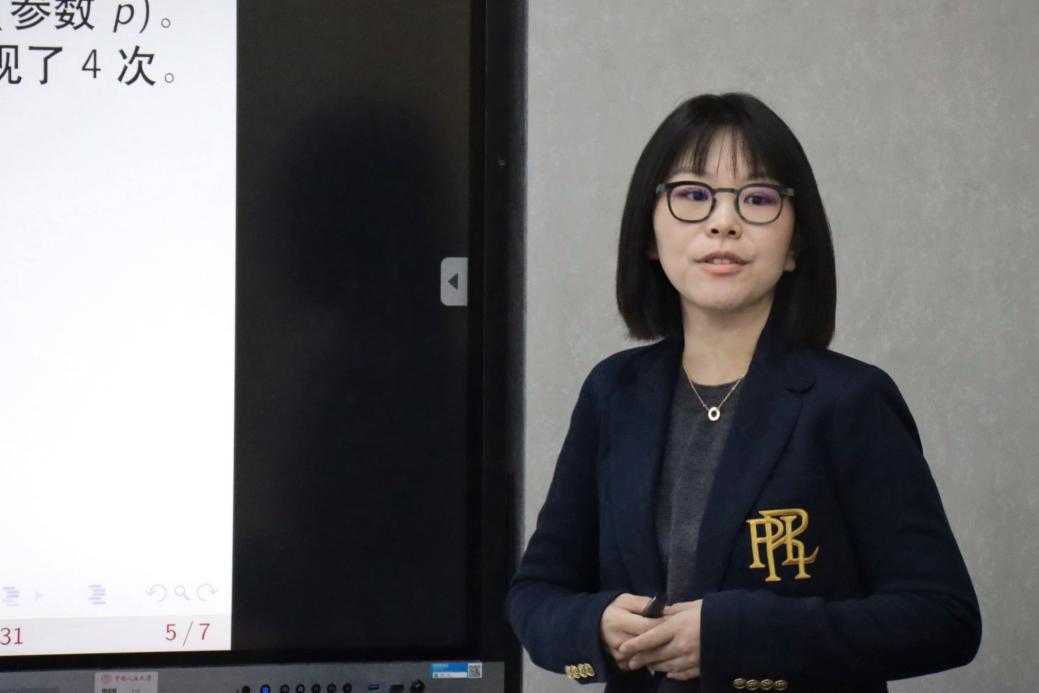 金嘉云的讲授主题为“极大似然估计”。她先引导员工在情景中考虑数据的分布情况,层层递进地梳理统计逻辑,介绍最大似然估计的应用场景,并引用《潜伏》的片段介绍极大似然估计的核心要义。接下来,她在不同类型的具体例子中讲授计算步骤。最后,她将“概率”和“似然”进行比较,启发员工加深对这一统计方法的理解。