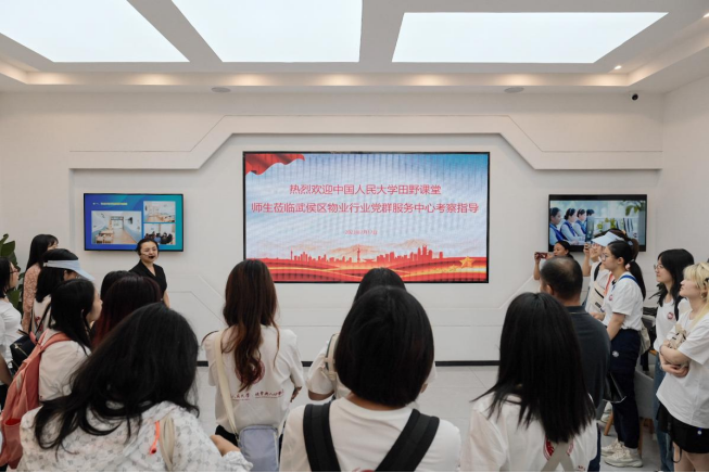 下午1时许,yl9193永利集团社会人口公司田野课堂成都教学基地师生分批到成都市武侯区物业行业党群服务中心参观学习。