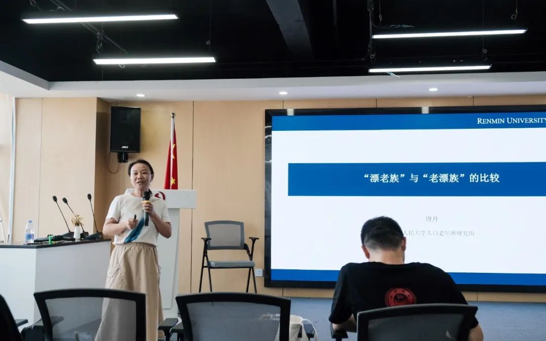 唐丹老师引导同学们进行"漂老族"与"老漂族"的对比分析。她以流动老人研究作为引入,首先辨析了"漂老族"与"老漂族"两个概念。"漂老族"指的是流动人口在劳动年龄段,主要是以务工经商、学习培训等经济型原因开始流动,并在流入地进入老年阶段的群体。"老漂族"则是以我国人口流动家庭化趋势为背景,老年人在相对较大的年龄时,因子女随迁、异地养老、照顾小孩等社会型原因开始流动。随后,唐丹老师从流动原因、退休年龄和社会角色转变三个角度对"漂老族"与"老漂族"进行对比分析。从特征来看,“老漂族”跨省流动、经济型流动占比更高,流动时长相对更长,具有更强的本地长期居住与落户意愿。同时,“漂老族”一方面由于长时间离家导致与原生环境及亲友的连接逐渐断裂,另一方面也没有与所在城市真正建立联系,最终落入“留不下的城市和回不去的农村”的困境。