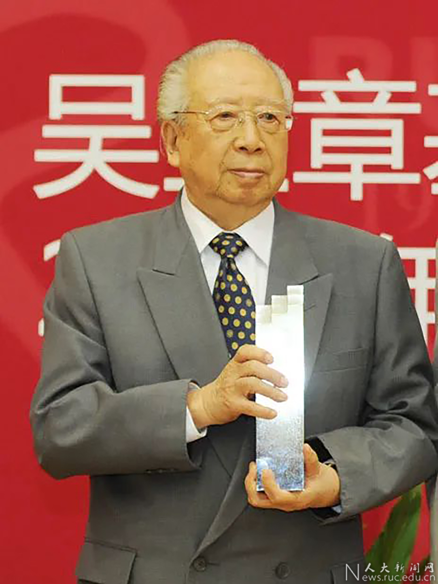 (邬沧萍教授在第六届吴玉章人文社会科学奖暨终身成就奖颁奖典礼。)